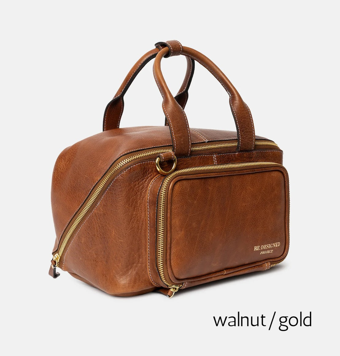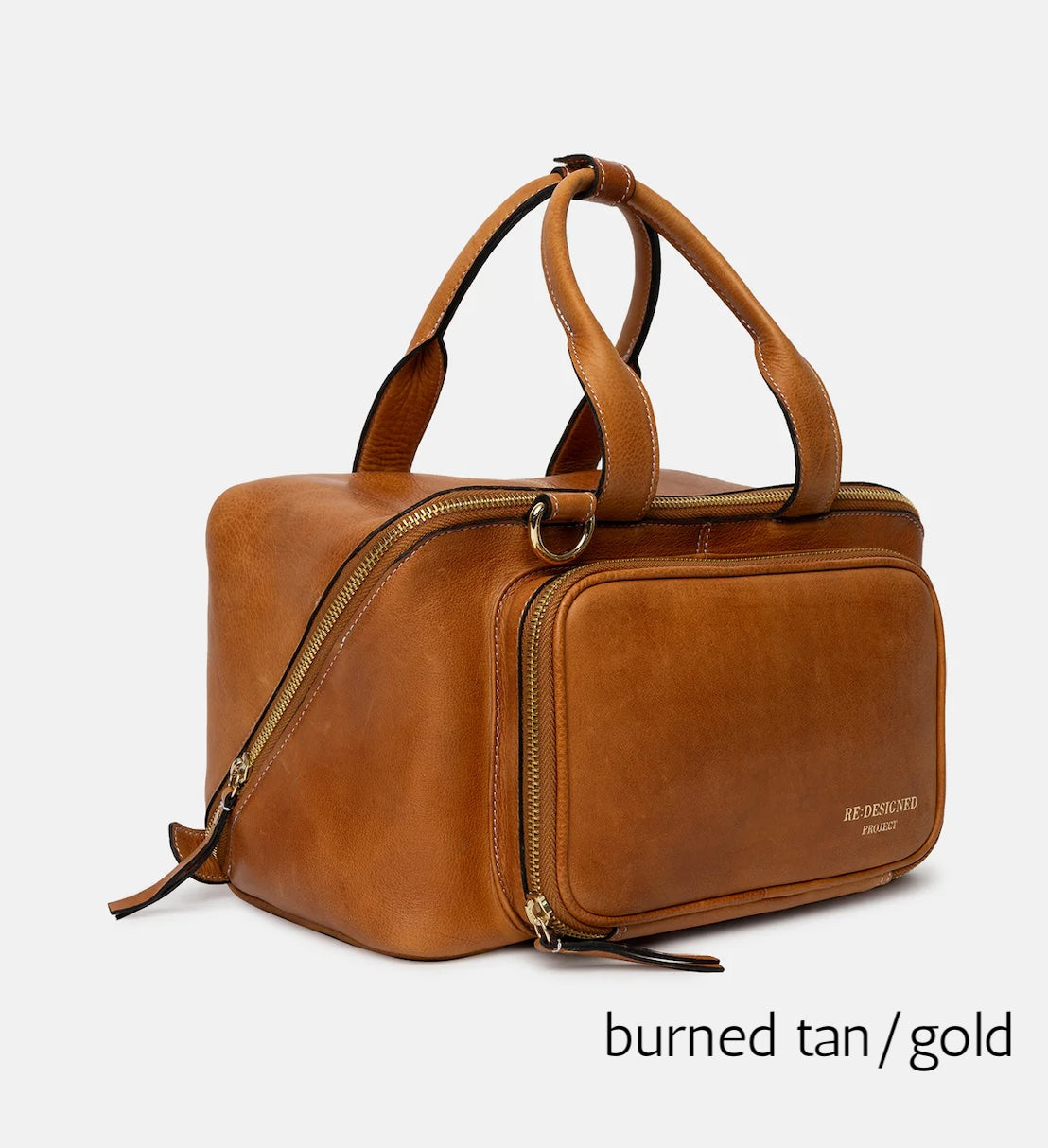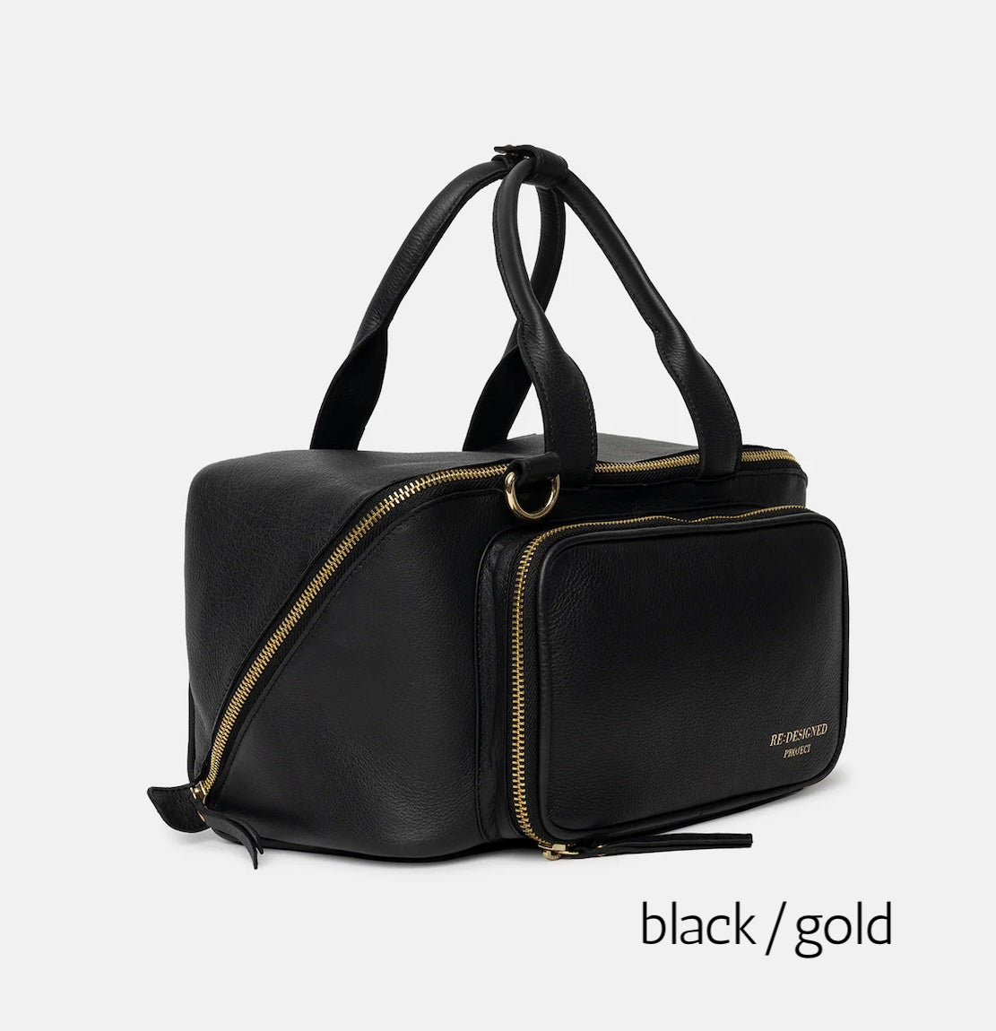 Re:designed has added handles, front pocket and a crossover to the iconic Project 10. The slanting metal zip unfolds a spacious compartment with lots of pockets and details.