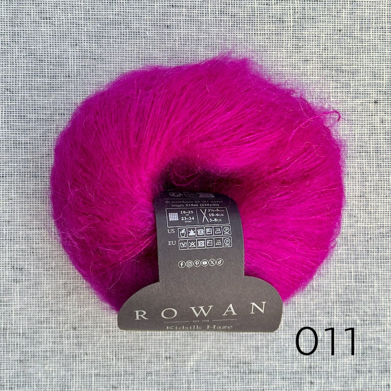 Kidsilk Haze combines the soft halo of super kid mohair with the vibrant shine of silk in one incredible yarn that is loved by knitters the world over. Kidsilk Haze can be used with a variety of needle sizes to create different effects and styles, and is a firm favorite with lace fans. Used alongside other yarns it takes on an almost magical quality, and is available in a kaleidoscopic array of stunning colors. If you can't find a colorway that you are looking for, you may want to look at Silk Mohair by Isager or Mohair Luxe by Lang.