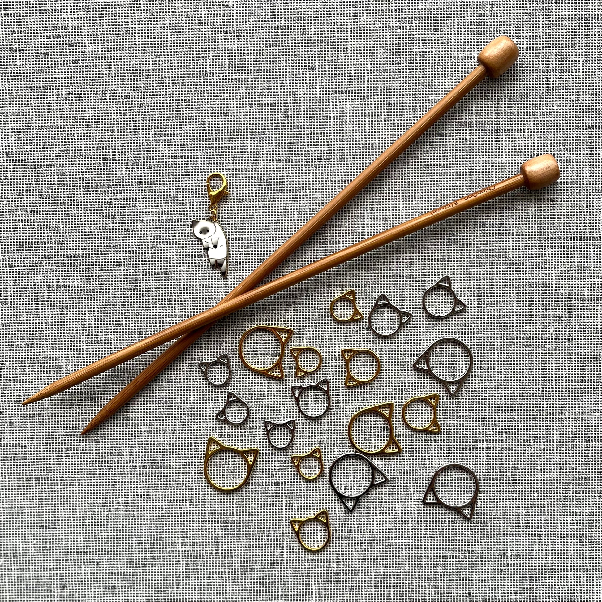 We've put together this assortment of cat themed stitch markers for the cat loving knitter. Set includes: